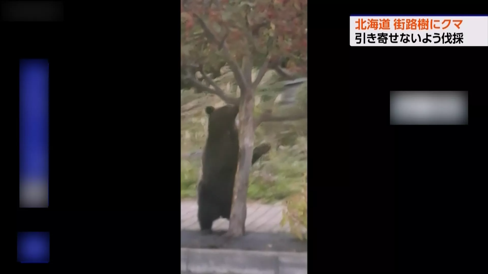民眾按喇叭也不怕,1.5公尺的大棕熊上樹找果子吃,眼見市中心屢傳有熊上樹,北海道當局連兩日大動作砍樹,同時警告民眾清晨和夜晚最好不要出門,以策安全。