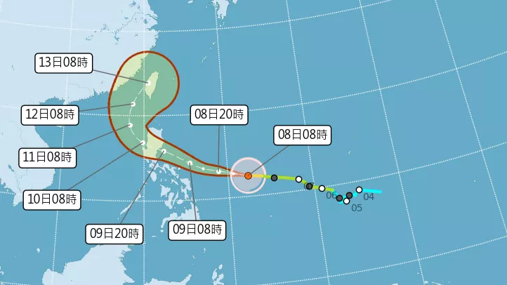 中央氣象署預報員張竣堯指出,若颱風路徑、移動速度沒有出現太大變化,預估週一上半天發布海上颱風警報,週二進一步發布陸上及海上颱風警報。