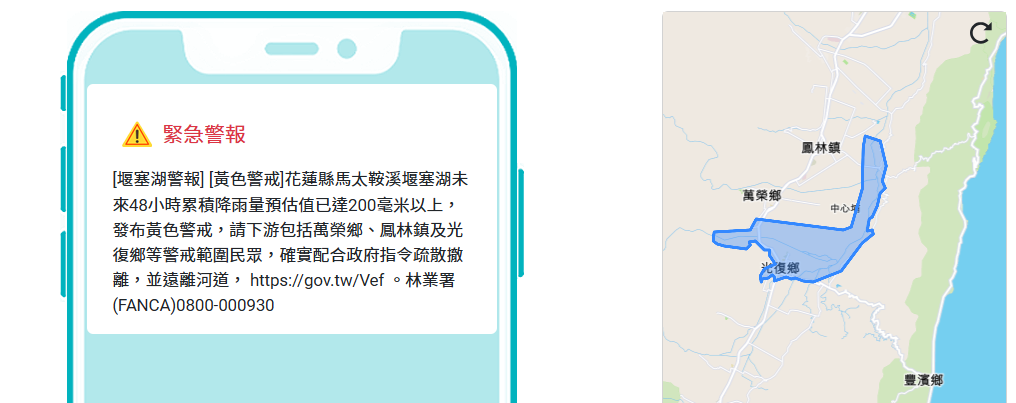 鳳凰颱風逐漸靠近台灣,馬太鞍溪堰塞湖未來48小時預測累積雨量達200mm,林業及自然保育署9日上午發布黃色警戒,要求花蓮縣政府及相關鄉鎮啟動預防性疏散及避難前置準備。