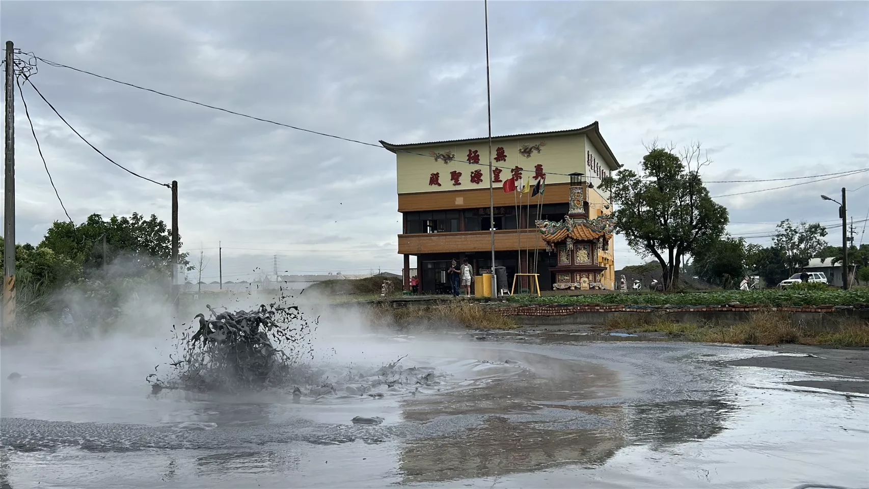 位在泥火山噴發點旁的皇源聖殿廟方人員表示,今日上午5時許發現泥漿開始從噴發點湧出,直至午間12時左右仍在持續,且還增加一處新的噴發點,周遭農田已有景觀植物受到影響。廟方指出,泥火山每年都會在附近噴發,但噴發時間並無規律,經觀察每年約噴發1至4次。