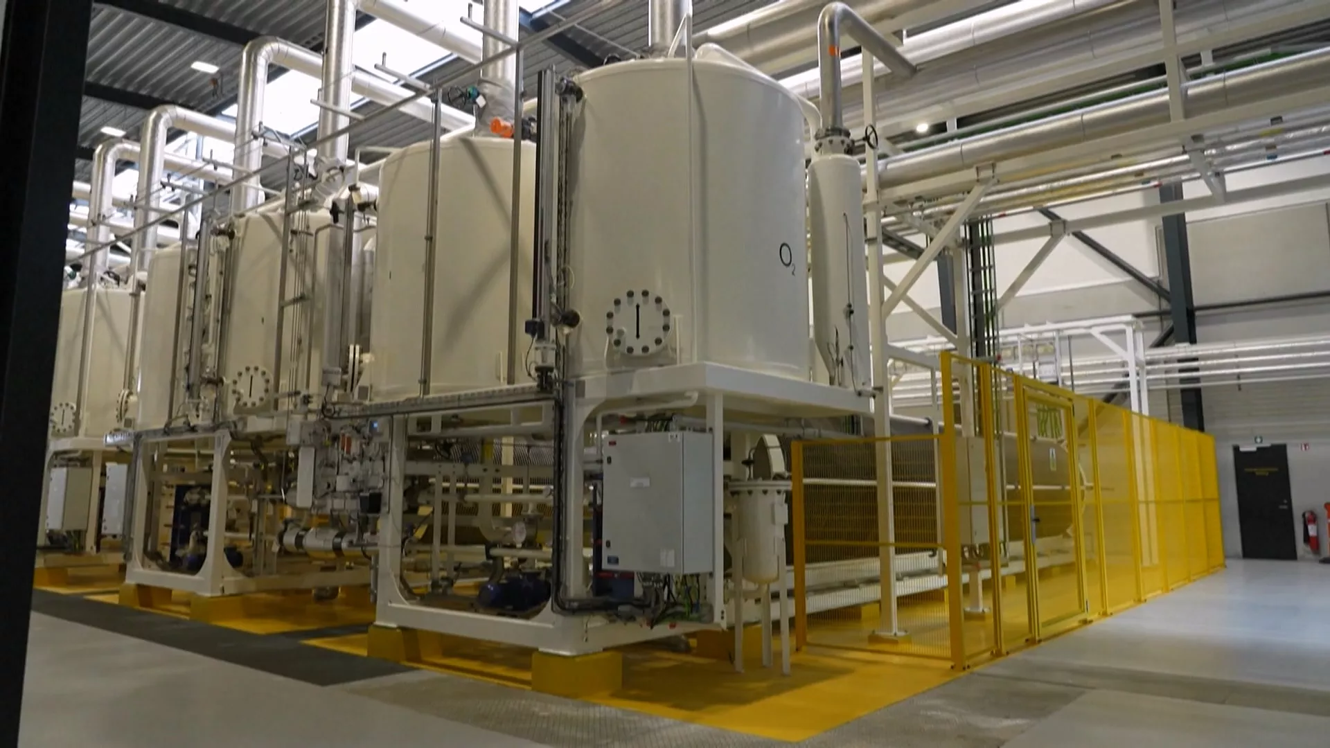 歐洲能源資深副總潘史托普說明,「我們在電解槽中加入水,電流會分解水分子成氫與氧,二氧化碳和氫氣以氣態形式進到這裡,然後進入我身後的反應器,反應器中有催化劑能引發反應生成甲醇或甲醇和水的混合物。」