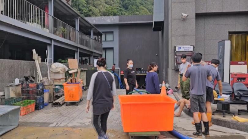 運動公園內有許多從道路拖來的泡水車,至今無人認領,鎮長呼籲車主快出面處理,否則只能報廢。水災過後,蘇澳多處停水停電、店家停業,物資難以取得,居民也靠Line群互助。