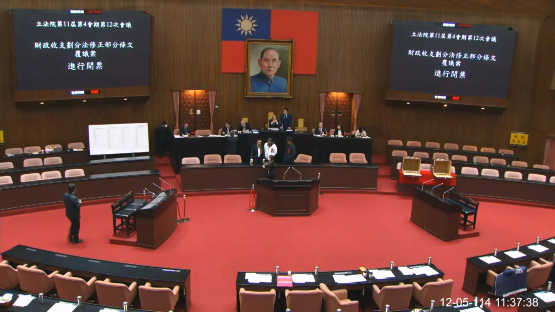 「修正通過」,立法院長韓國瑜敲下議事槌說道。