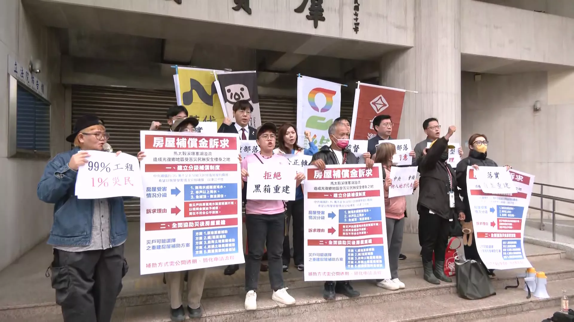 高喊口號,部落青年要求重建計畫應該要納入災區居民觀點,花蓮馬太鞍溪堰塞湖災害衝擊光復鄉等地,政府編列上限300億元的重建經費,但部落青年認為對回歸家園、人文回復層面的規劃不足,也喊話要把房屋補償金額提高。