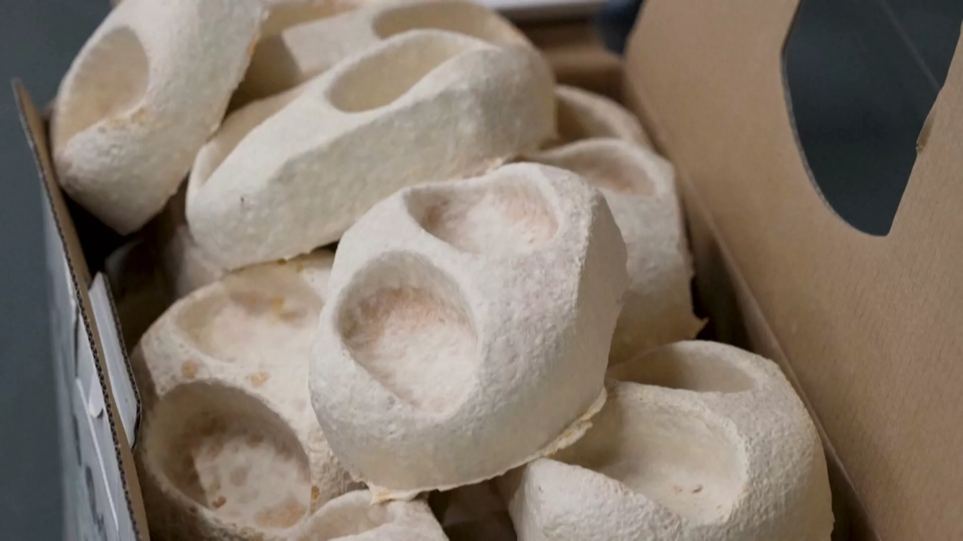比利時新創公司發言人馬爾滕斯指出,「大約10天後它會生長5天,然後再進行5天的乾燥,就能得到這種包裝。這個是用來放肥皂的,它完全可以生物分解,在30天內您可以將它堆肥,它會在自然界分解甚至能滋養土壤,因為多虧真菌,它仍充滿了好的營養素。」