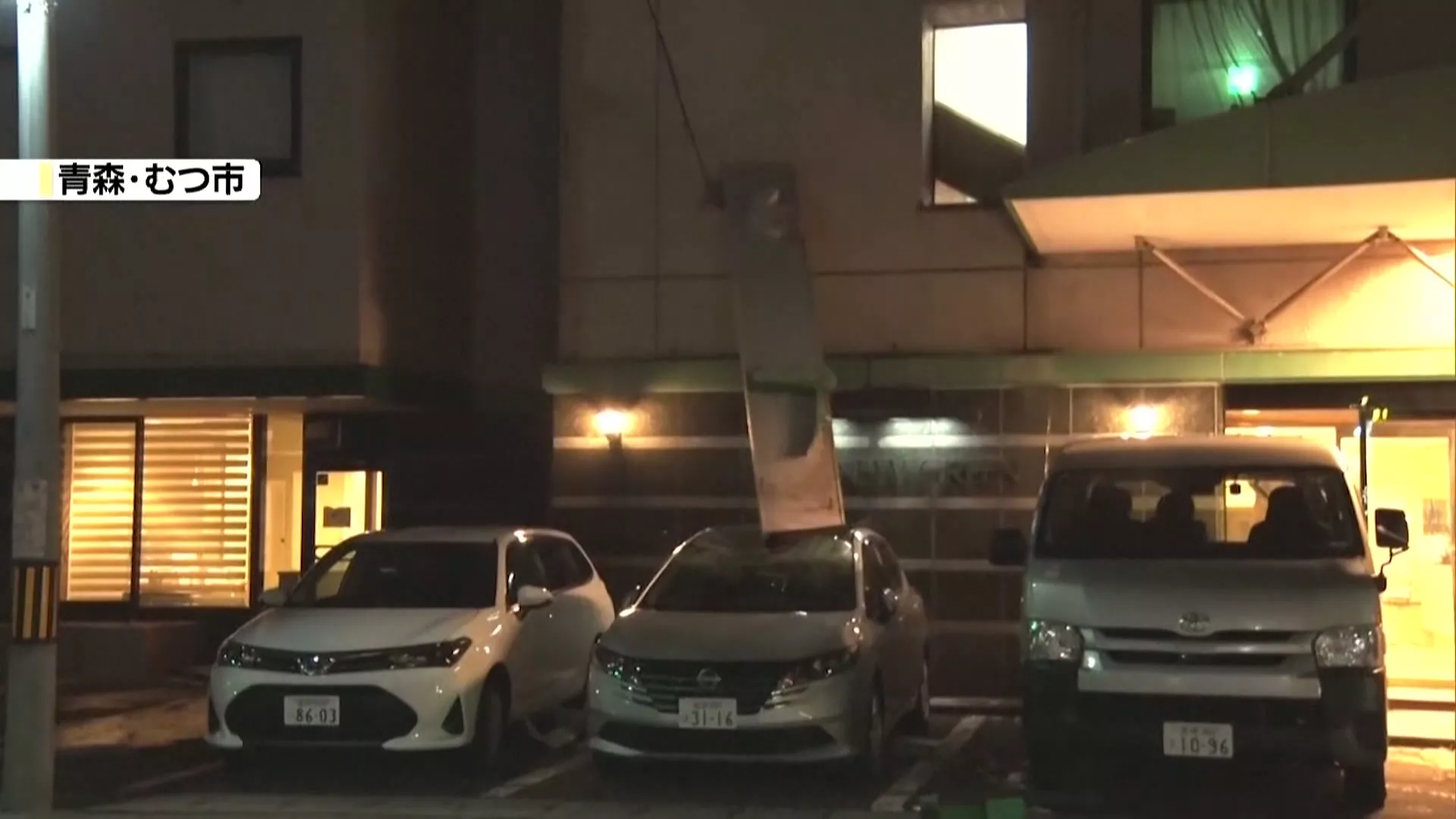 在尖銳的警報聲下,巨大的鋼板直接砸在車頂上,差一點就穿透轎車車頂,鄰近的街道沿路不少玻璃碎片、建築外牆磁磚散落。日本8日當地半夜11時15分,青森縣東方外海發生規模7.5的強震、震源深度54公里的淺層強震,讓青森八戶市震度達到6強等級,氣象廳緊急對沿海地區,一度發布了最高3公尺的海嘯警報,還要求居民緊急避難到高處。