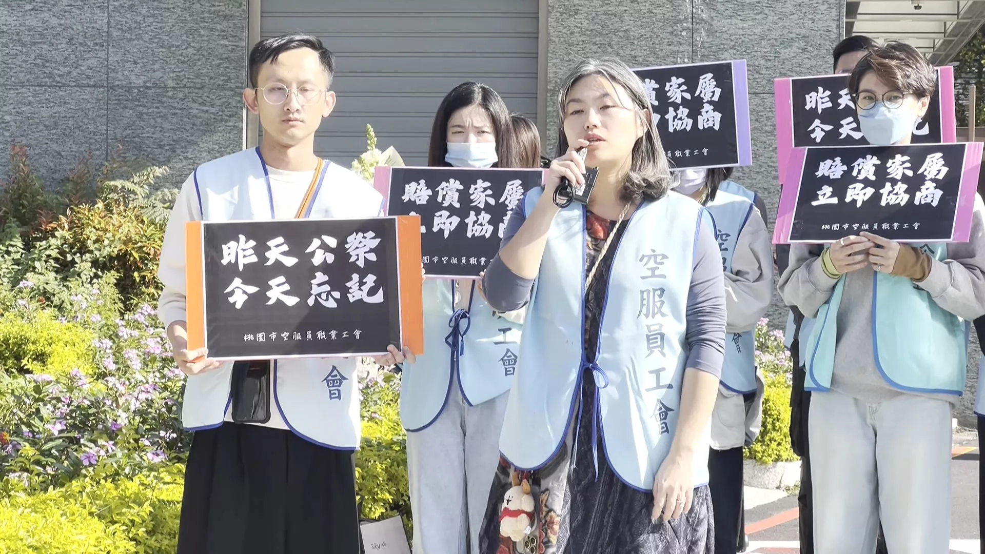 空服員職業工會喊道,「昨天公祭,今天忘記!」