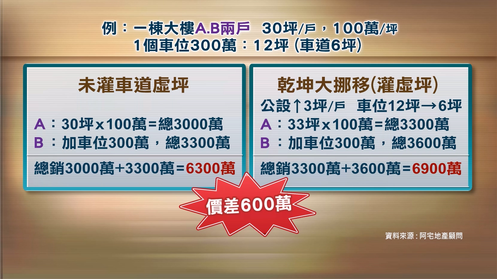 蕭大立說明,只要調整車道變成公設,他沒有花額外的建築成本,總銷直接就多賺了六百萬。
