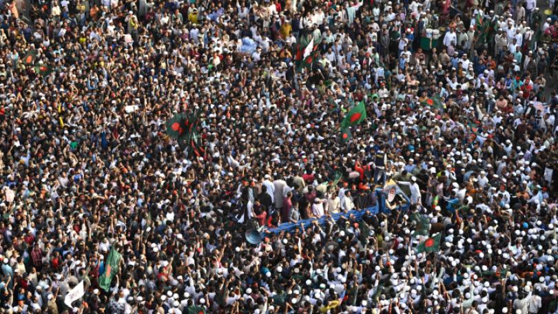 民眾依序通過安檢,來到孟加拉首都達卡,為的都是要送學生領袖哈迪最後一程,有人情緒激動、也有人眼眶泛淚,悼念人潮不斷高喊口號,怒火也從送行逐漸轉化為對現在狀況的不滿。