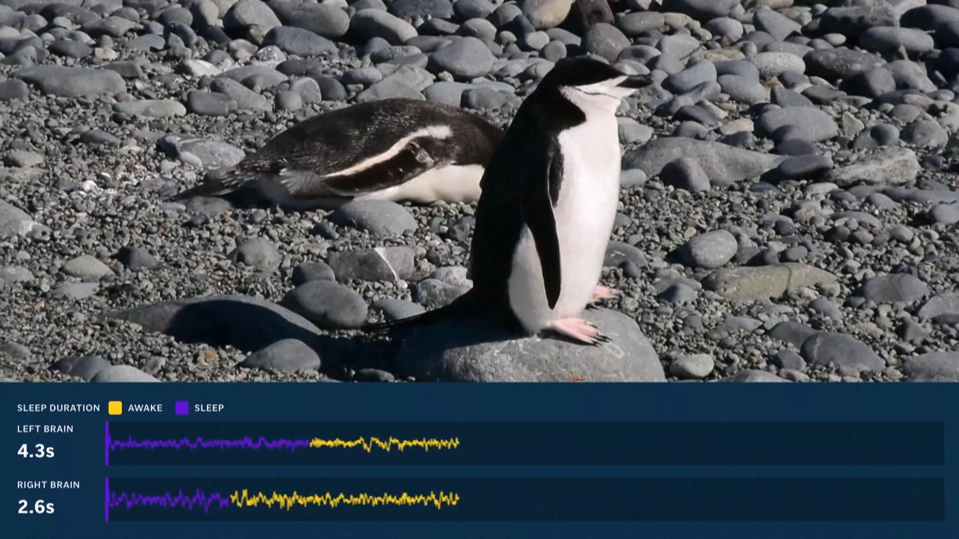 人跟家庭寵物可以安心地翻肚睡覺,但對野生動物而言,睡著是讓自己可能被天敵攻擊,最危險的時刻,因此發展出非常多樣的睡覺方式,來降低風險,比方南極的帽帶企鵝夫婦,在繁殖季節互相輪流,一個照顧幼雛,一個潛水覓食,牠們一次只睡4秒鐘,一天小睡好幾千次。