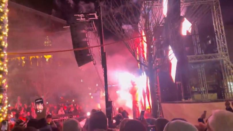 目擊民眾阿克塞爾說:「可以說這就是表演,當你點一桌酒水就會有表演,實際上的表演是這樣,有人拿兩瓶酒爬到另一人的肩膀上,當時煙火正在施放,但酒瓶揮得太高,酒瓶撞到天花板就著火了。」
