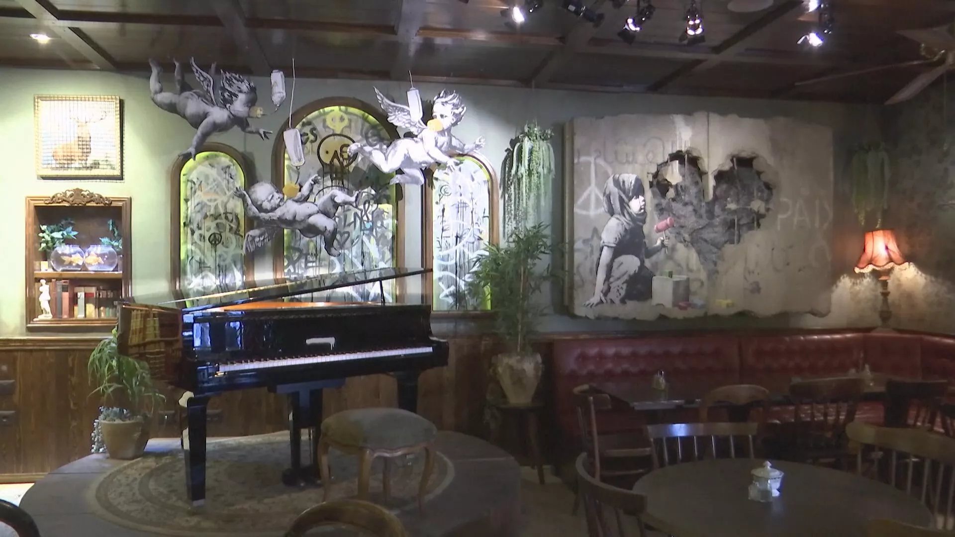 位於約旦河西岸城市伯利恆的「圍牆飯店」,沒有一般大飯店的門面,陳舊的裝潢中帶著前衛藝術的設計感。這家由英國鬼才藝術家班克西,親自構思與設計的3星級飯店,受到加薩戰火波及,已經停業2年多。隨著停火到來,飯店也重新對外營業,讓外界再度親睹這家充滿神祕藝術色彩的旅店。