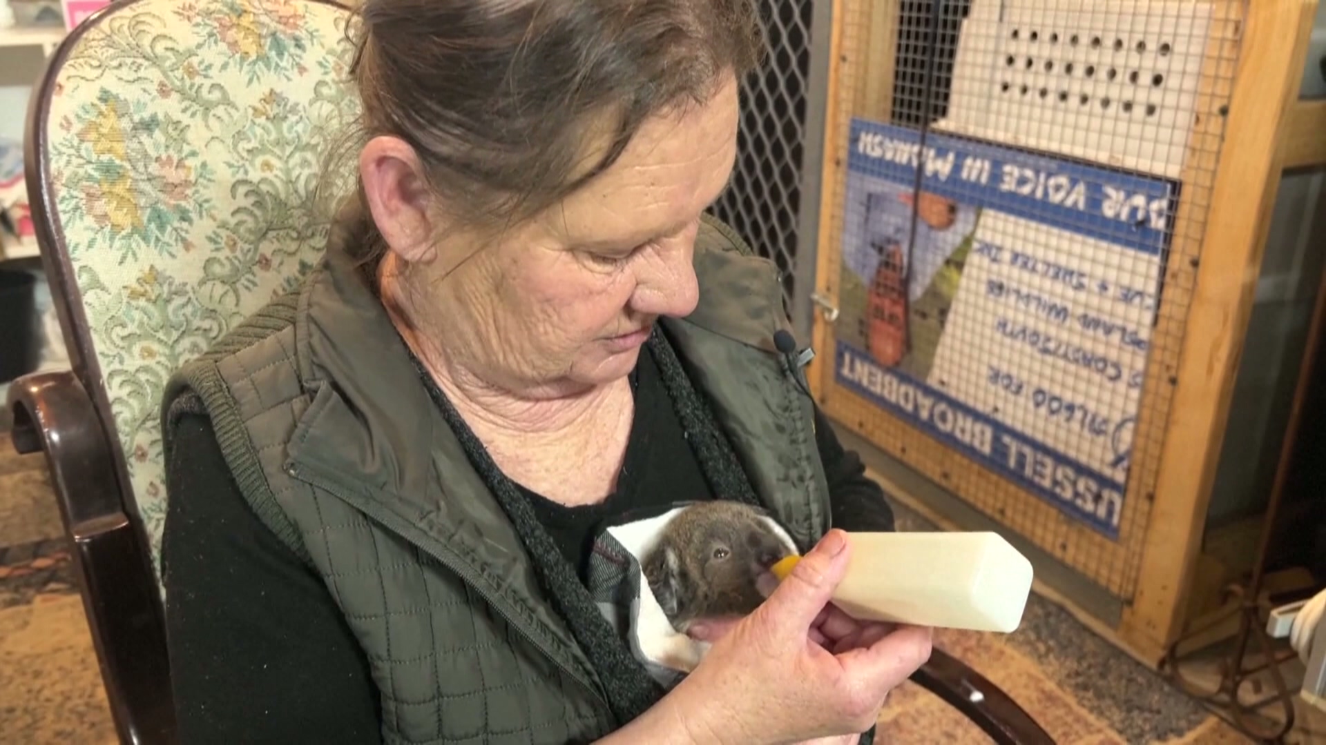 野生動物照護者蘇摩爾表示,「過去12個月裡,我接手了80隻無尾熊,這段期間整個中心,大約處理了350隻各種動物。」