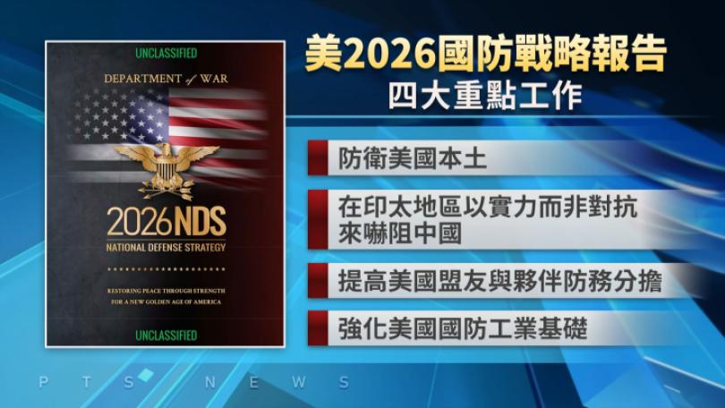 美國五角大廈發布最新《2026年國防戰略》,共提出防衛國土為優先等四大方針,在印太地區則改以「實力而非對抗」原則遏制中國。BBC分析,與4年前版本相比,中國威脅已不再被列為美國國安優先事項。