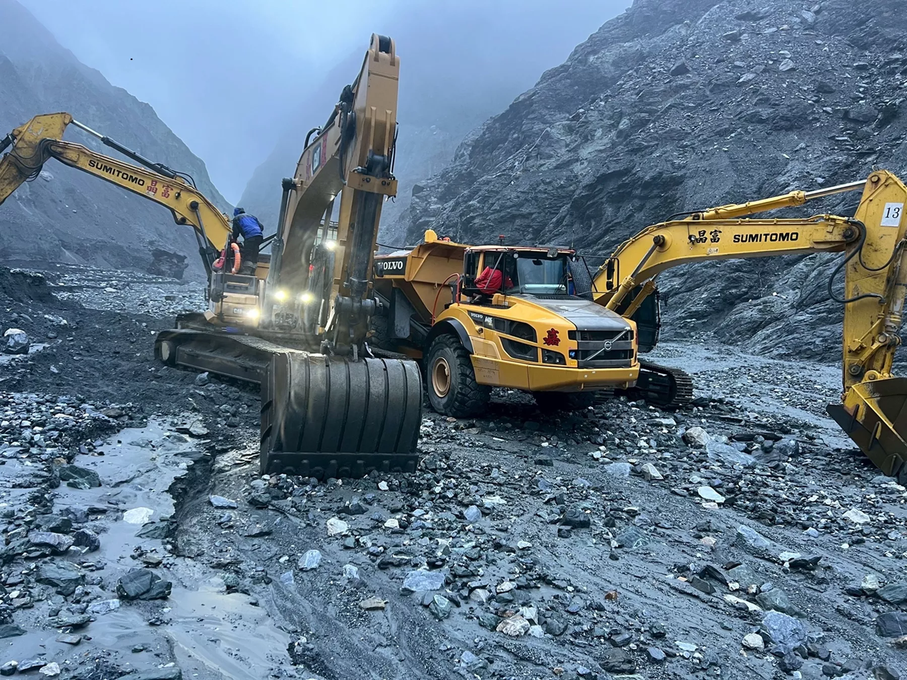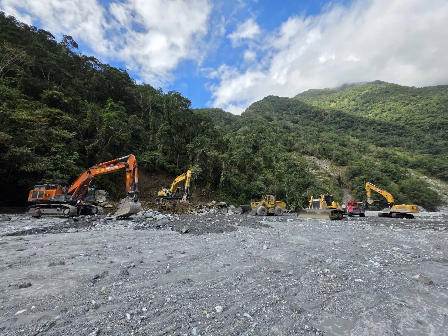 而施工人員原定下撤路線,因11日在距離溢流口下游1.5公里的V型河谷邊坡發生約18公頃土石崩坍,滑落土體擠壓河道,造成河道束縮,影響施工人員下撤安全。花蓮分署說明,為以備日後不時之需,所有施工機具仍暫時留置堰塞湖壩區現場,未來也將在汛期前進行相關防減災工作,降低下游風險。