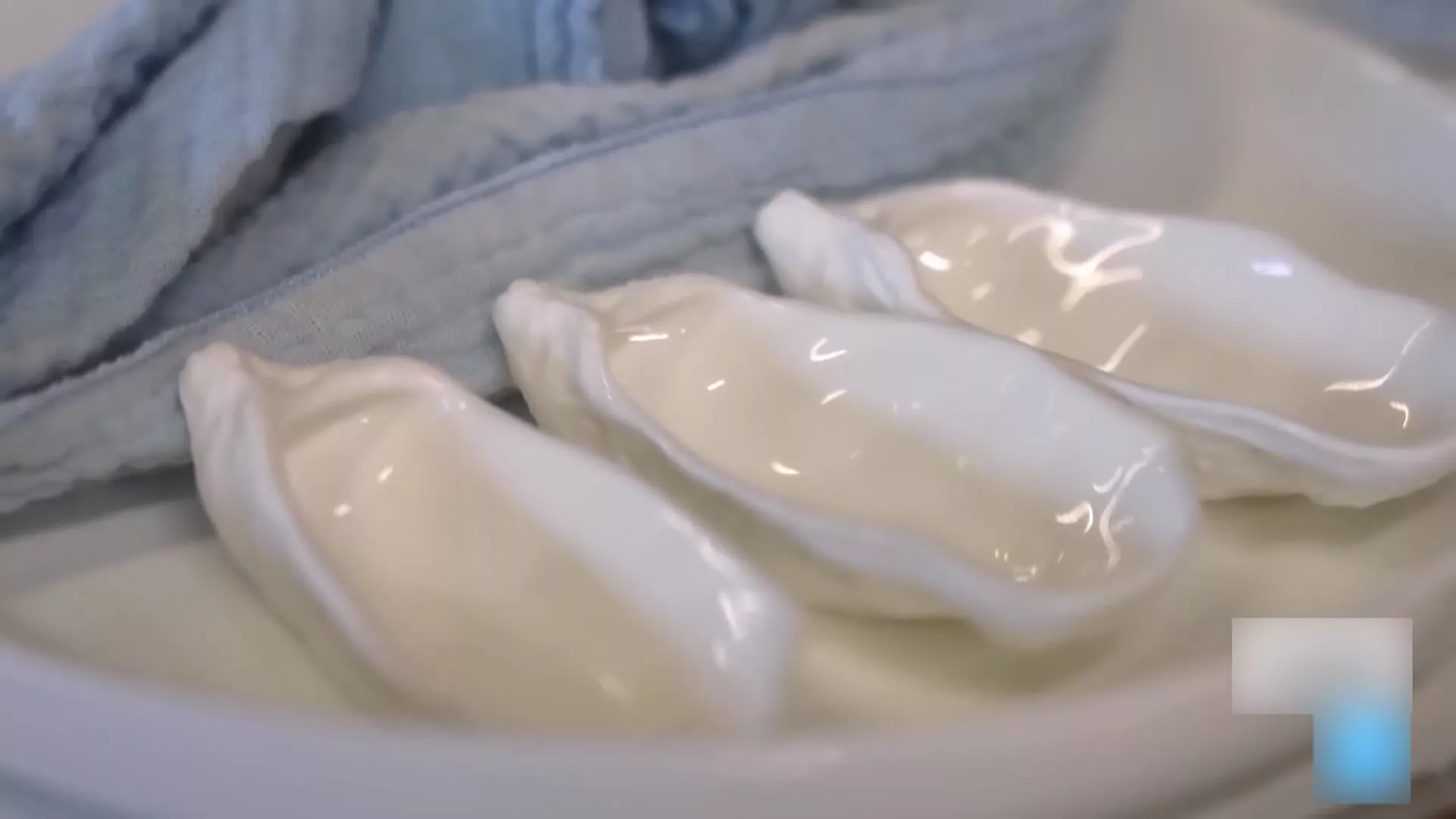 現在有一間新創企業,與牡蠣養殖業者合作,回收這些廢棄的牡蠣殼。企業會將空殼先運送到距離養殖場,約1小時車程外的工廠中,使用中古設備,將牡蠣殼進行清洗、研磨成粉末後,再重新加工,製作成瓷器。