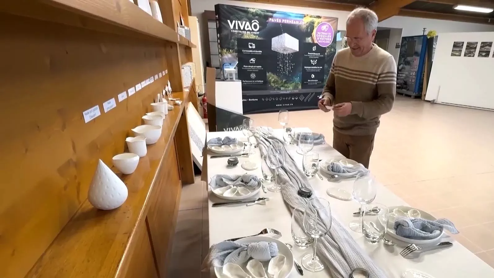 將牡蠣殼製作成瓷器的靈感,來自於牡蠣殼內層、宛如珍珠般的光澤,新創企業請來陶藝師,將磨成粉的牡蠣殼,混合黏土,手工製作出富有海洋氣息的餐具,受到米其林的星級餐廳的愛用、好評。