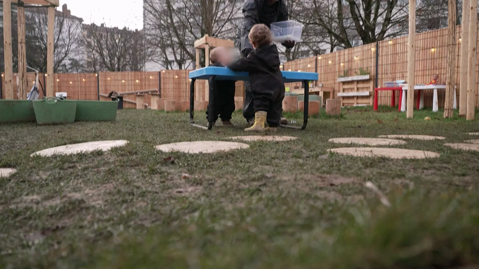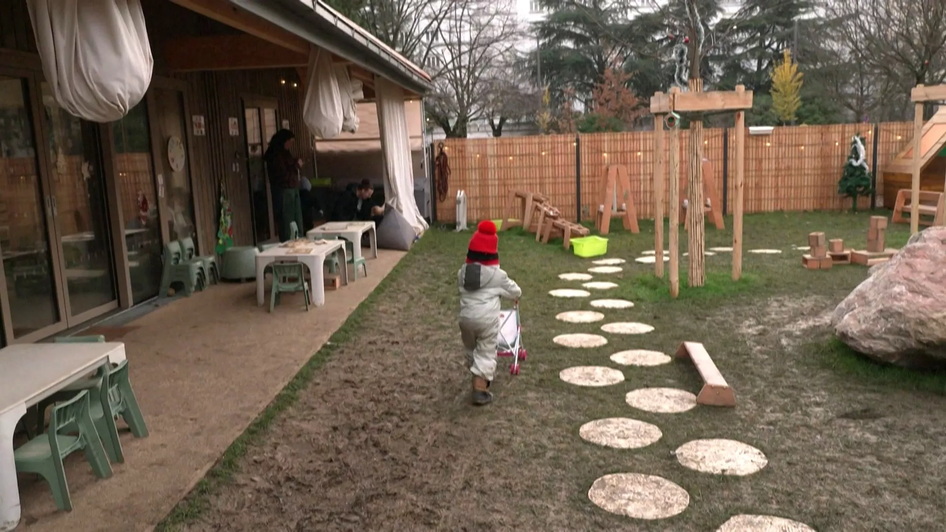 這家佔地86坪的幼兒園,在寸土寸金的里昂巴蒂商業區中顯得格外難能可貴。無論晴天或雨天,幼兒園的孩子只要穿上防水耐髒的雪衣外套和靴子就能在戶外嬉戲,經常玩得滿身泥,盡情消耗旺盛的體力,如果天氣過冷或過熱活動就改在室內進行。儘管衣物得頻繁換洗,家長覺得無所謂。