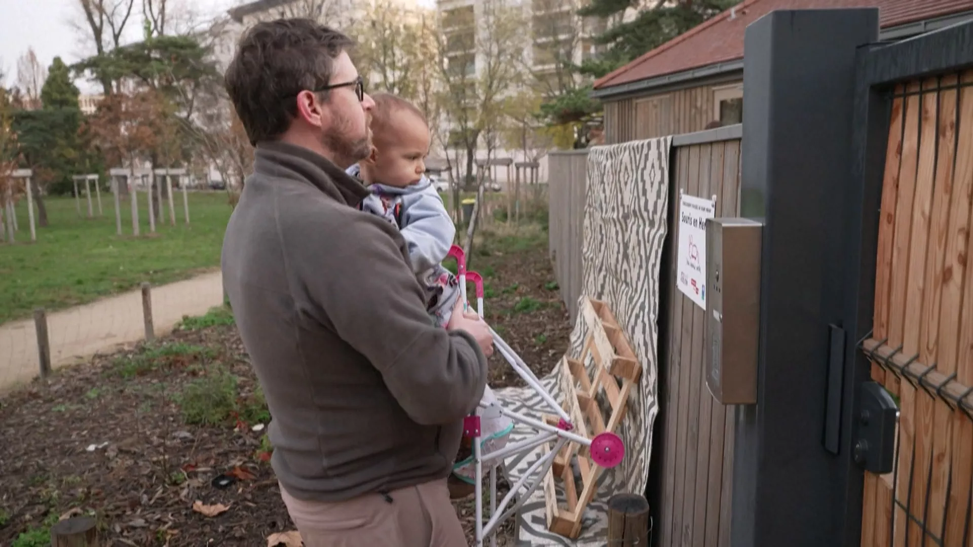 1歲半的艾洛伊絲跟著爸爸進入幼兒園,展開另一個開心的上學日。這家由非營利組織創辦的幼兒園2025年11月才成立,目前有20名1歲半到3歲的孩子就讀。和其他幼兒園最大的不同,是這裡的孩子從用餐、午睡、遊玩和學習活動全都在戶外進行。