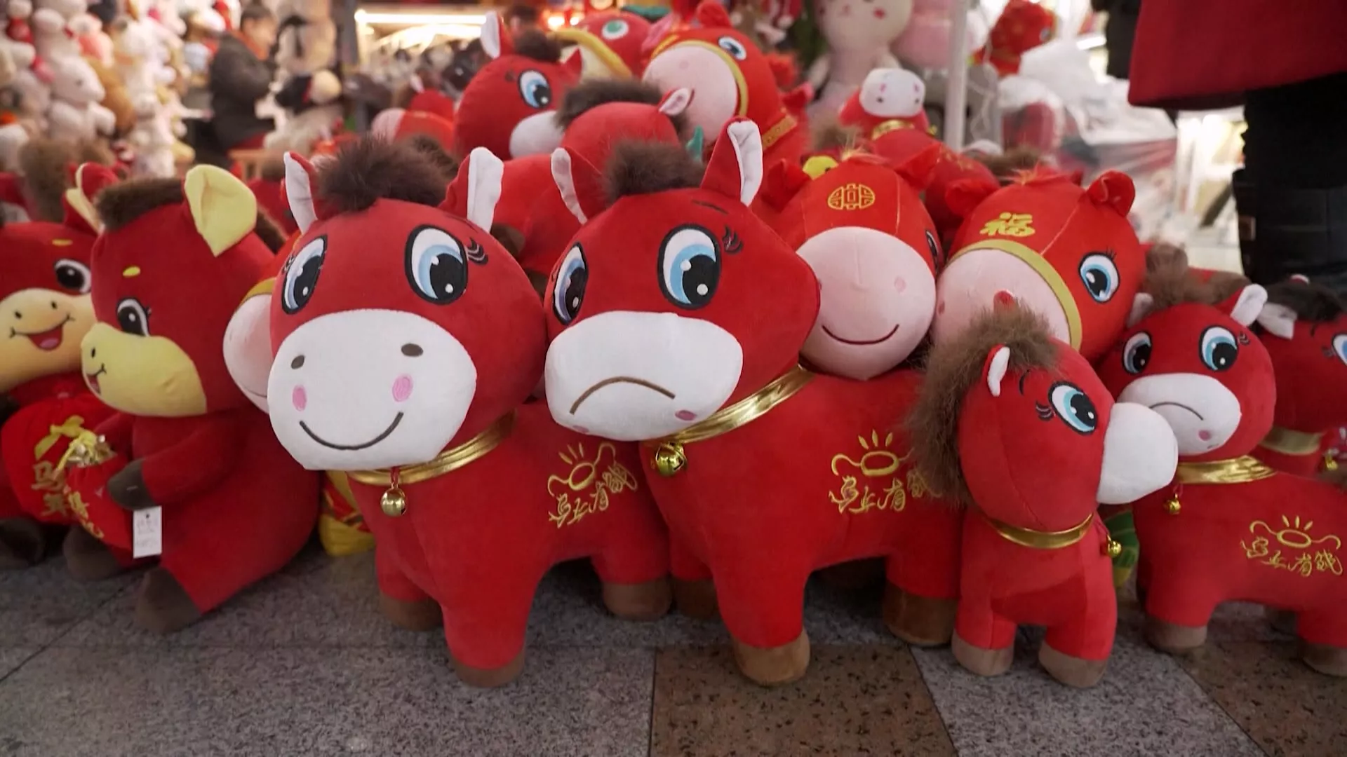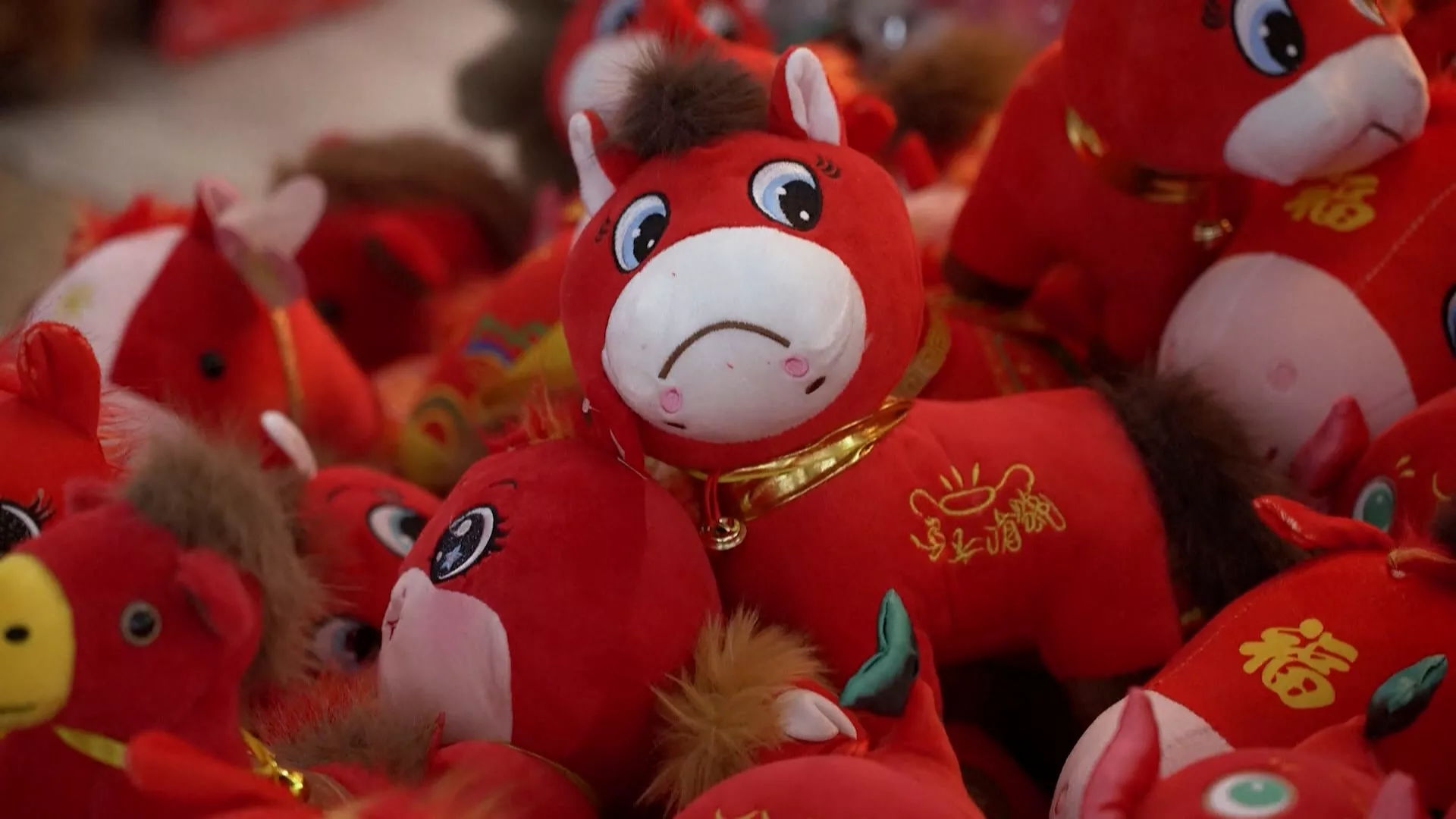 全球最大的小商品批發市場義烏商貿城,此刻紅通通的過年應景產品正大量出貨,店門口堆成山的小紅馬非常吸睛,不過仔細一看,小馬兒的表情不是只有笑臉,還有扁著嘴的哭哭臉。業者說,原本是生產線上縫錯的產品,顧客先是要求退貨,但後來又不退了,原來是賣得不錯。