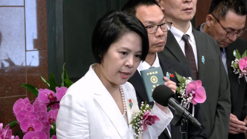 舉起右手、宣誓就職,民眾黨不分區立委執行兩年條款,後續遞補6位新任立委,其中對於陸配身分的李貞秀是否放棄中國籍引發討論,3日國會新會期報到第2天她也親自對外釋疑。