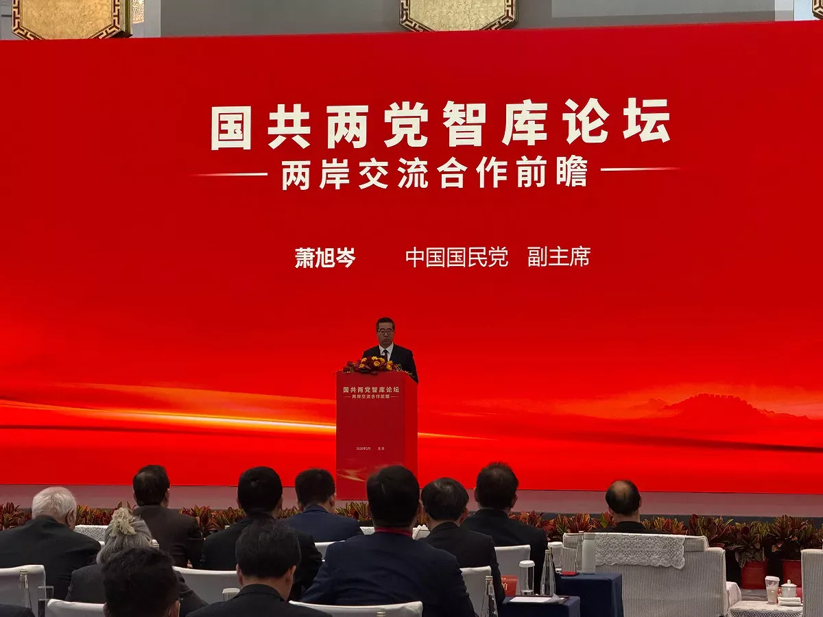 國共兩黨智庫論壇3日在中國北京舉行,國民黨副主席蕭旭岑與中國國台辦主任宋濤會面,兩人致詞時均強調堅持「九二共識」。會後雙方發布共同宣言宣稱在5個面向達成15項共同意見,內容包含推動恢復兩岸人員往來正常化、加強兩岸新興及環保領域領域合作與強化兩岸防災減災合作等。