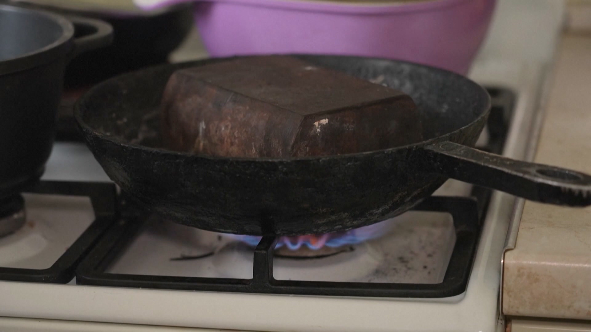 這兩位比鄰而居的退休族,停電時取暖的辦法是燒鐵,無論是鐵熨斗、還是從火車鐵軌取下來的一塊鐵磚,放在瓦斯爐上燒熱之後,都有散熱的效果。