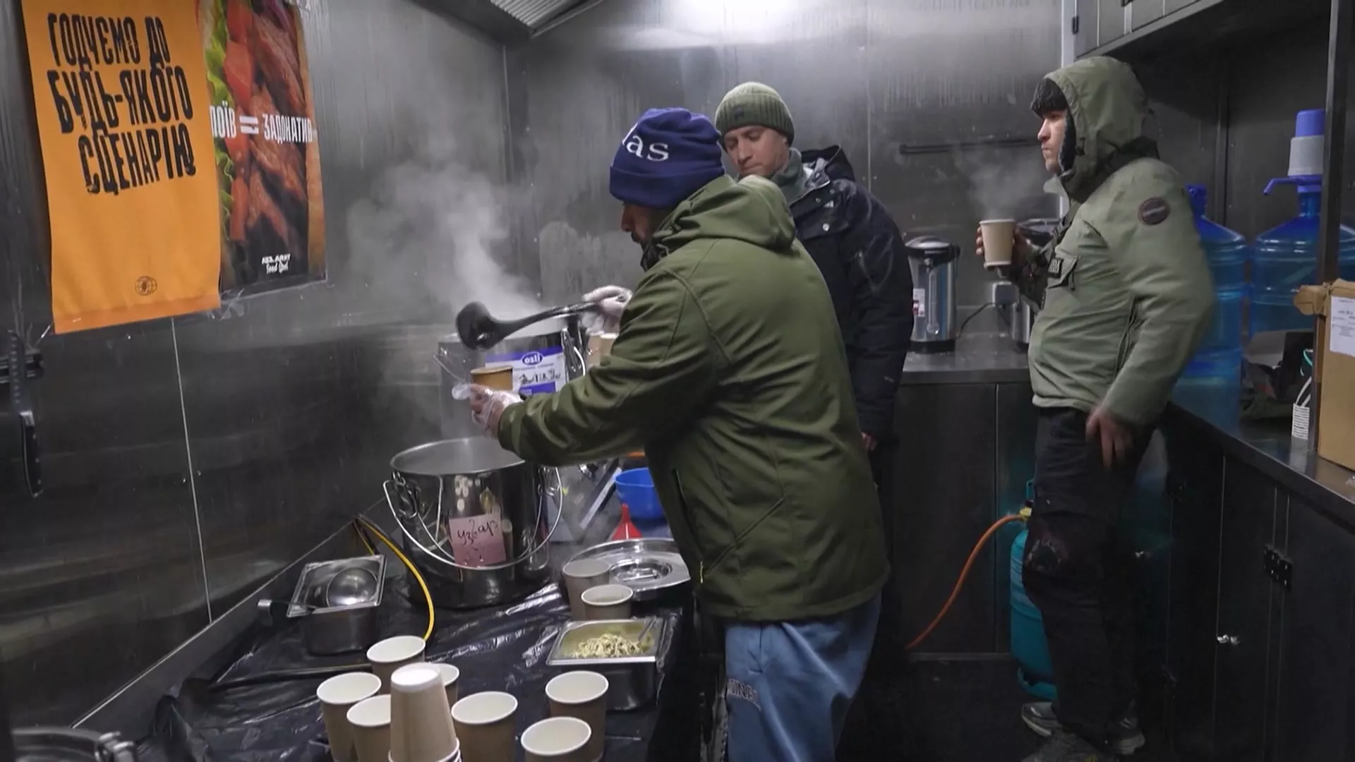 基輔市民耶欣申科表示,「真的是很團結的氣氛,其次實在是很艱難,因為我們只有半小時電力,所以我來給電子裝置充電,並在這裡喝點熱飲,幫助不小。」