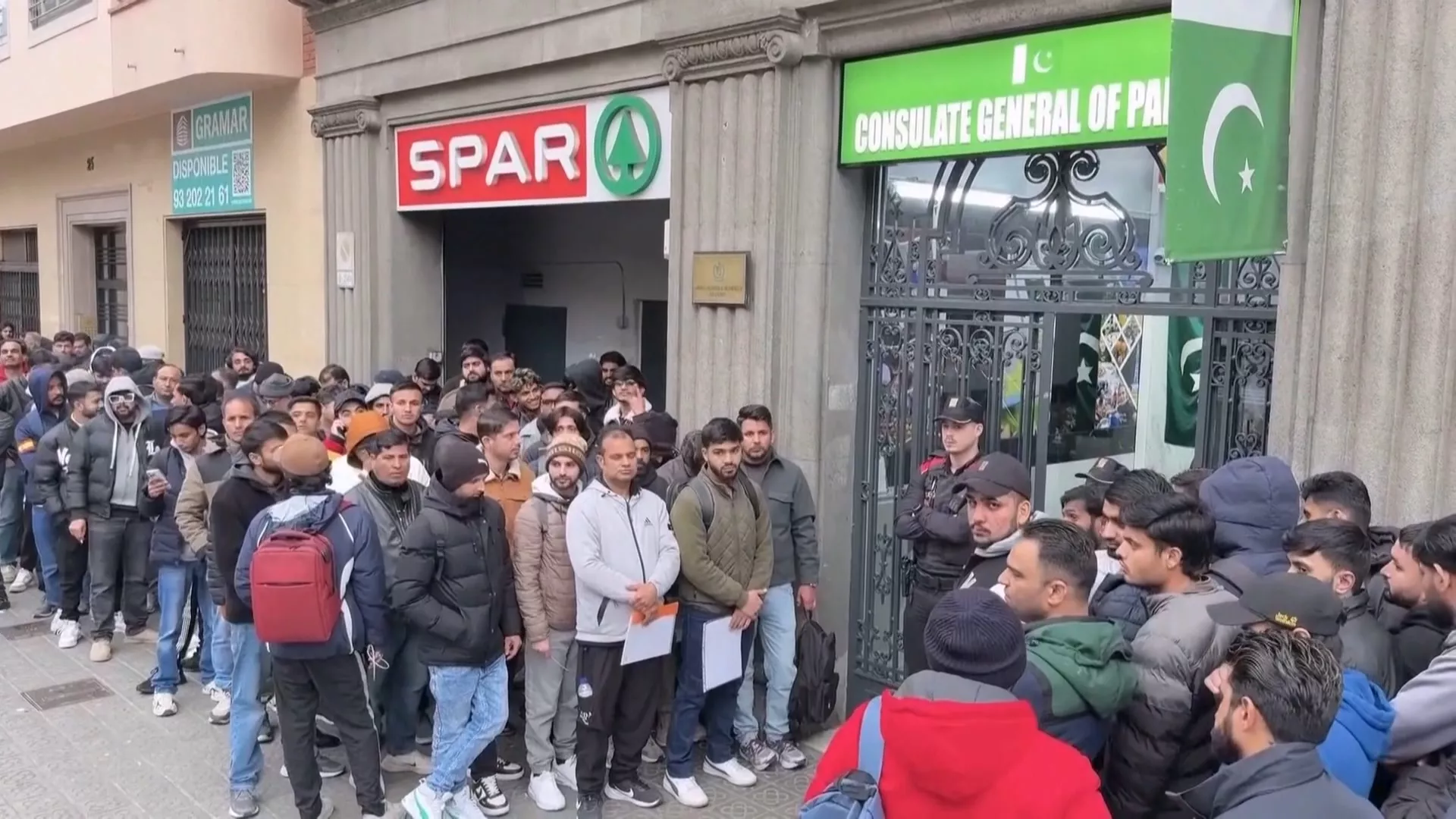 從馬德里到巴塞隆納,拉丁美洲與中東等多國外交領事館外,出現搶辦護照與無犯罪證明的排隊人潮,因為西班牙社會黨領導的聯合政府,為無證移民開啟了就地合法之門,只要在2025年底前在西班牙居住滿5個月、沒有前科,就能申請合法的1年居留與工作許可,期滿可以延長,未來有機會成為公民,申請庇護的人也適用,預計50萬人將可受惠,4月開始接受申請,許多使館預約電話被打爆,網站大塞車。