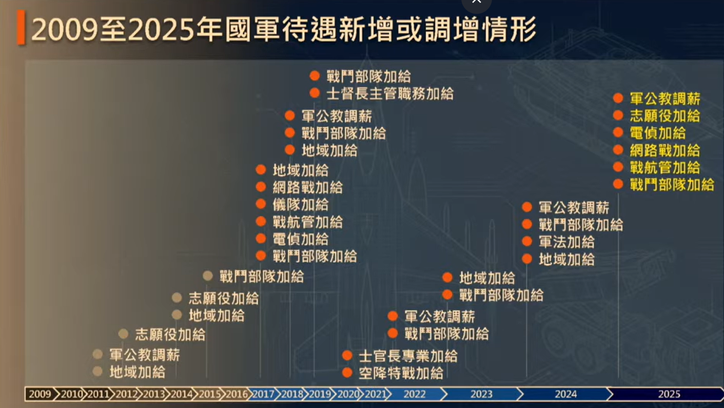 針對在野陣營以政府未編列為國軍加薪預算為由而拒絕審查預算案,賴清德回應,有關政府不照顧軍人指控是完全錯誤的連結;顧立雄則強調,若加上軍公教4次調薪,近年總共已為國軍加薪27次,。截至2025年底,國軍留營率達87.2%,志願役相較2024年也成長3000多人。