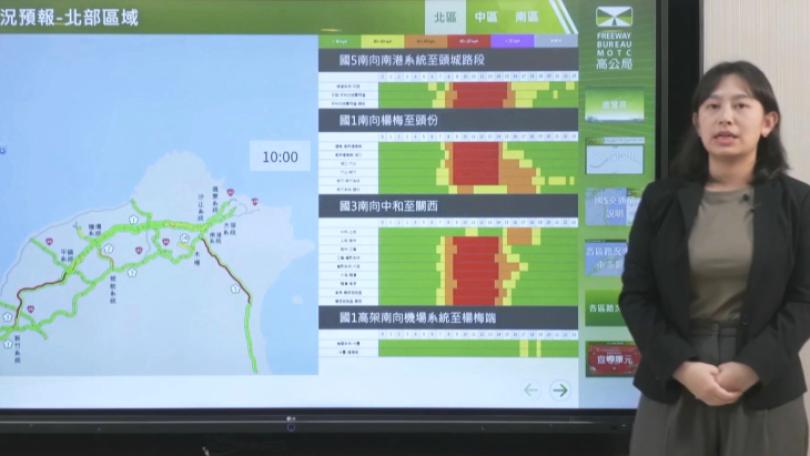 高公局預報員陳恩柔指出,「明天是連假第2天、也是小年夜,車潮主要還是以南向為主,而且集中在早上,春節期間初一到初三會是南向的尖峰日。」