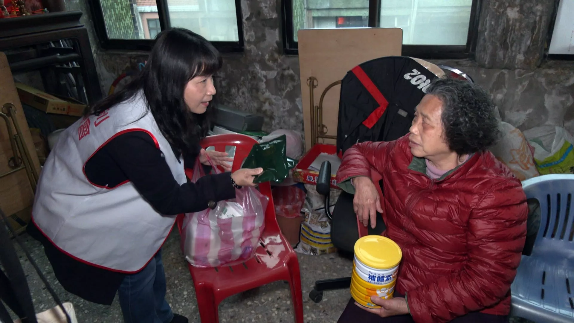 Hujan yang turun tak mengurungkan niat petugas perawatan jangka panjang (PJP) dari lembaga kesejahteraan sosial untuk mengirim suplemen nutrisi kepada nenek 80 tahun yang tinggal sendirian di lantai empat sebuah bangunan tua. Ia menyambut gembira kunjungan mereka. Selain mengantarkan perlengkapan, petugas sosial juga menyampaikan kepedulian terhadap kondisi pemulihan nenek pasca operasi katarak, membuatnya sangat tersentuh.