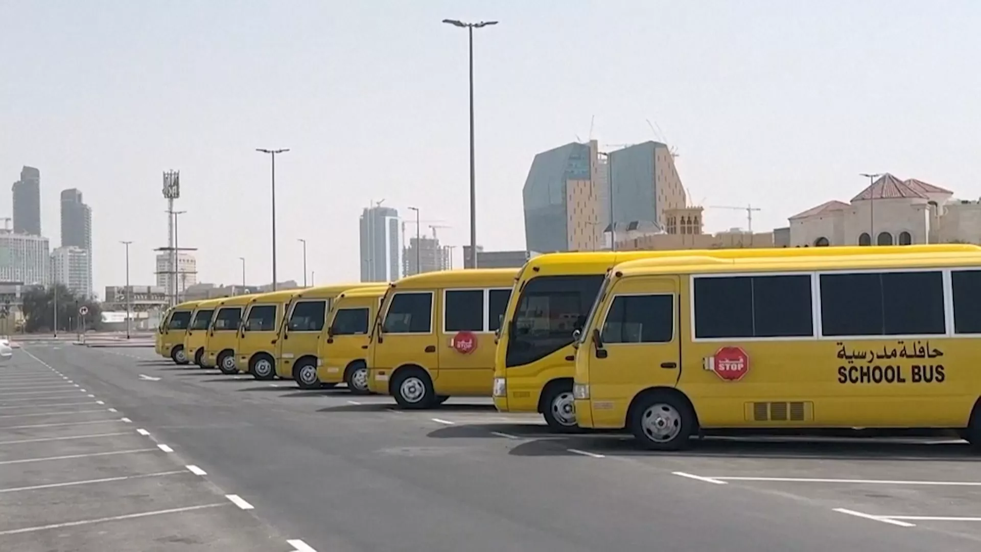 阿聯人口最多的城市杜拜,街道上幾乎沒有人,各級學校的大門緊閉著,校車也全部停在路邊。由於中東的局勢日益升溫,學校除了實體課程停課,現在也只能採取線上遠距教學。