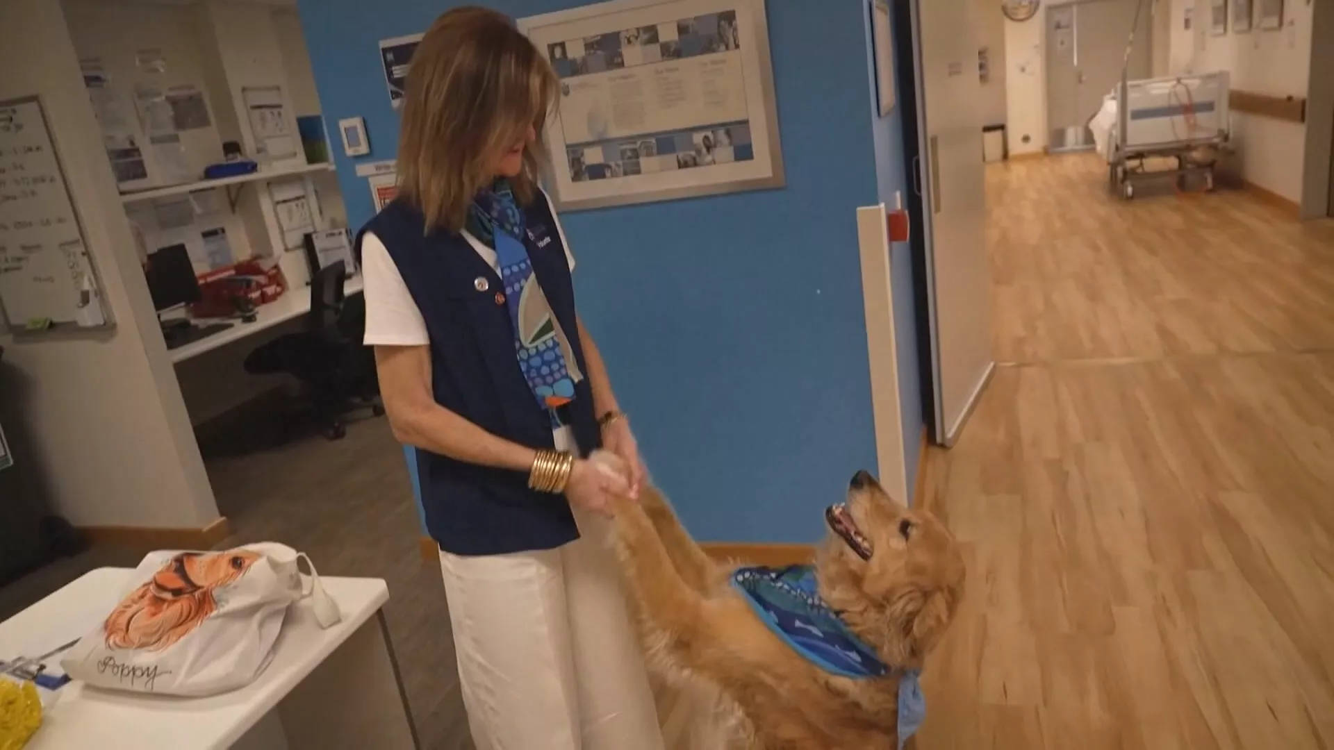 澳洲聖文森安寧機構人員黛比提到,「家屬跟病患知道帕比何時會到醫院來,他們會來確認牠哪天會進來,當他們看到牠走進房間,你就會聽到『帕比來了,牠太漂亮了。』」