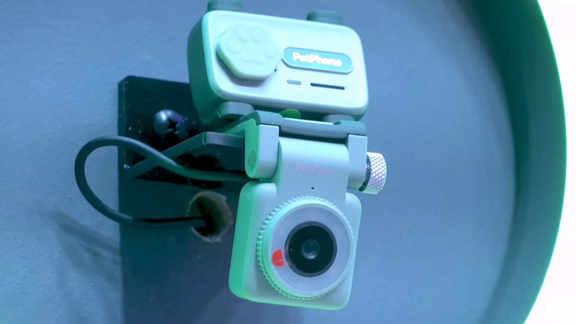 陳朝暉介紹,「這是寵物專屬手機跟相機鏡頭,讓主人透過電話知道,牠們現在是開心還是不開心。就像人類的手機一樣,帶領大家進入另一個新時代。」