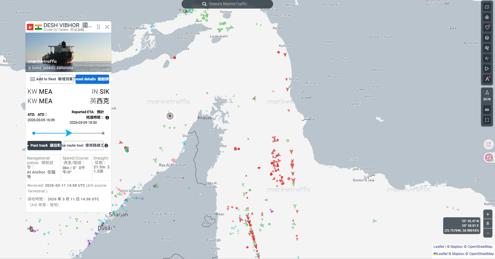 檢視船隻追蹤網站「MarineTraffic」則可發現,確實有印度油輪在該海域活動的蹤跡。