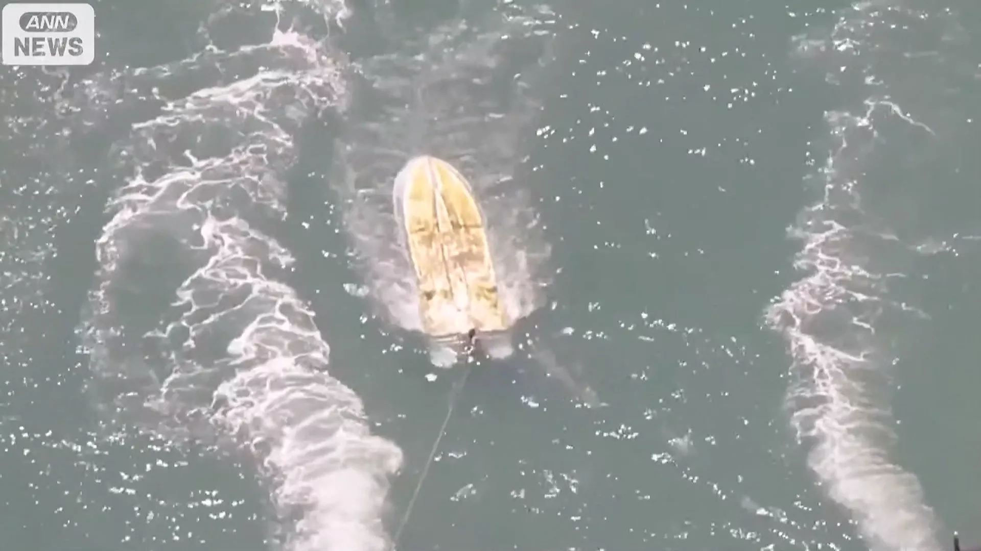 從直升機上往下看,能看到穿著橘色衣服的消防人員,正坐在翻覆的船上;另一邊的船隻,則是有潛水員下水推著船往其他救援船靠近。日本時間16日的上午10時10分左右,日本沖繩名護市的邊野古地區沿岸,發生2艘船翻覆,船上所有人都落海。消防人員獲報後,緊急動員與救護車前往搜救。
