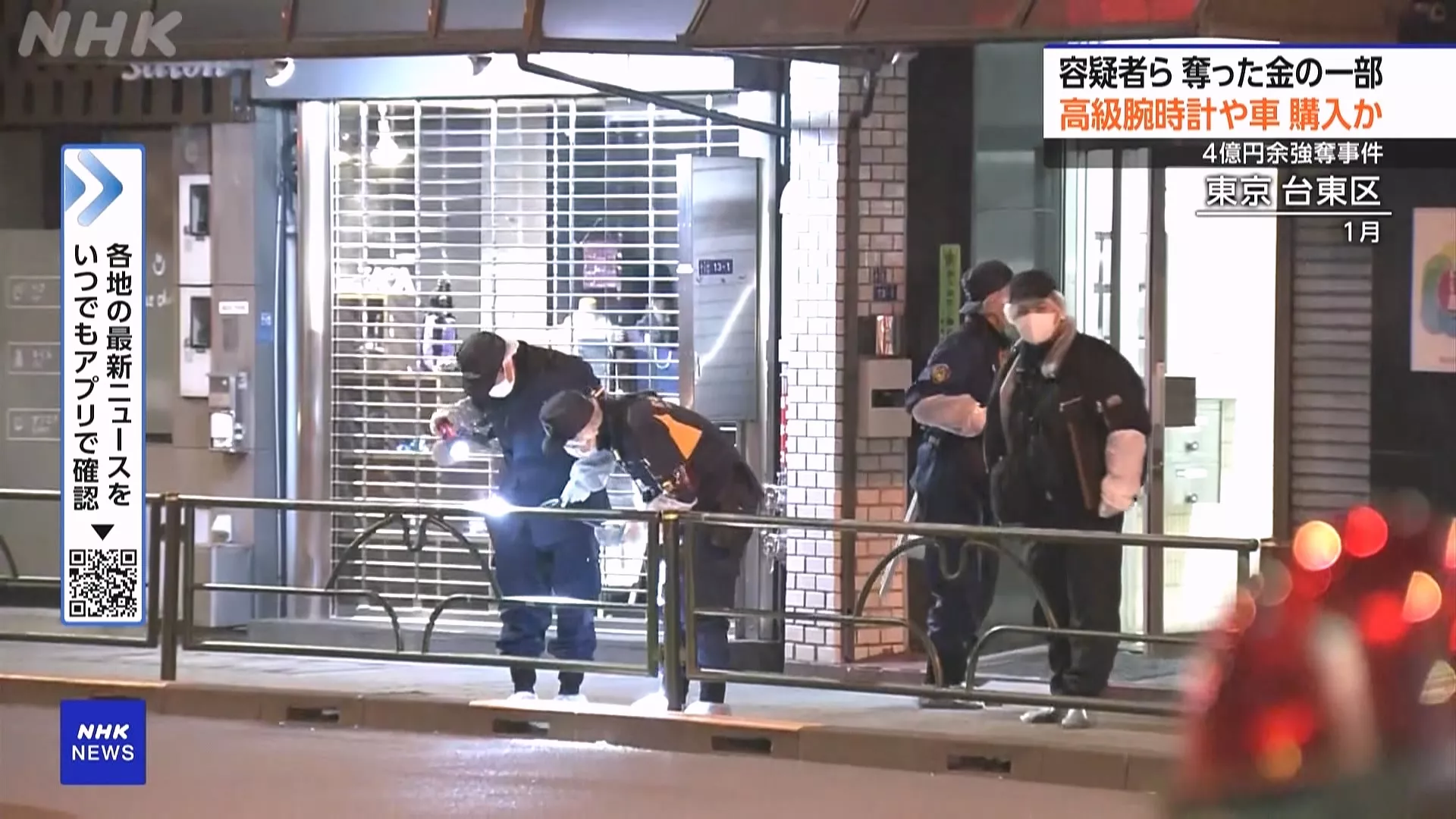 日本警方上週末逮捕7名嫌犯,指控他們涉入發生在1月29日晚上的搶劫案。當時有幾名男子走在東京台東區路上,手持裝有4.2億日圓現金、相當於台幣8000多萬元的3個手提箱。