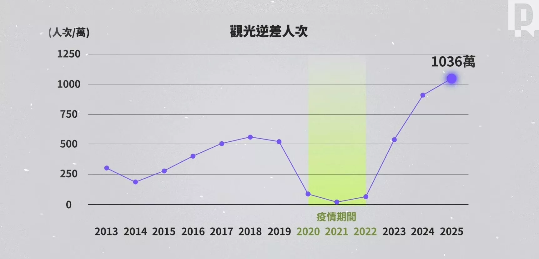 2019年起中國來台旅遊陸續中斷,疫後至今仍未完全開放,不過就算扣掉中國旅客,2025年外國旅遊來台人次還是比疫情前少了13%。