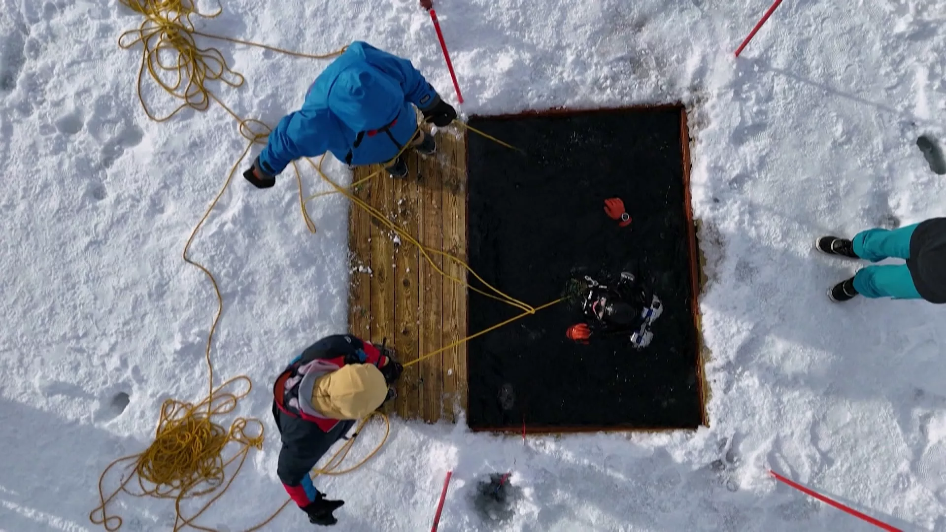 位在芬蘭、瑞典與挪威交界的基爾皮斯湖,湖面被厚達80公分的冰層覆蓋,潛水員鑿開洞口準備進入水下世界,這是赫爾辛基大學科學潛水學院主辦的一項為期10天的訓練,共有12名來自不同行業領域的國際學員參加,目的是培養專業潛水員,在極地執行研究任務,像是穿透冰層取樣,重建氣候變化的歷史。