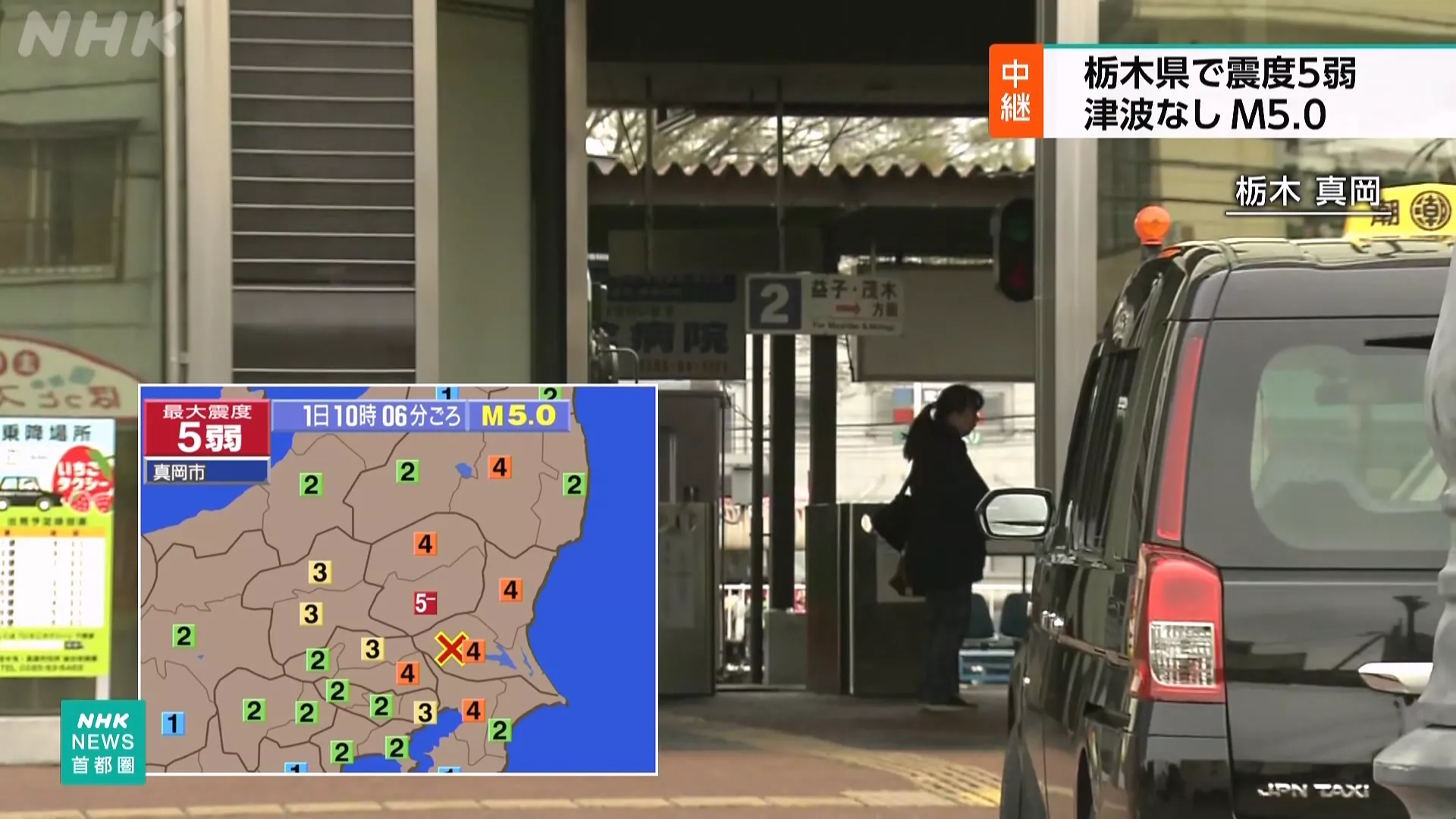 日本櫪木縣南方今(1)日當地上午時間10時許,發生規模5.0的地震,震源深度達48公里,連東京都能感受到,暫時沒有傳出人員傷亡。