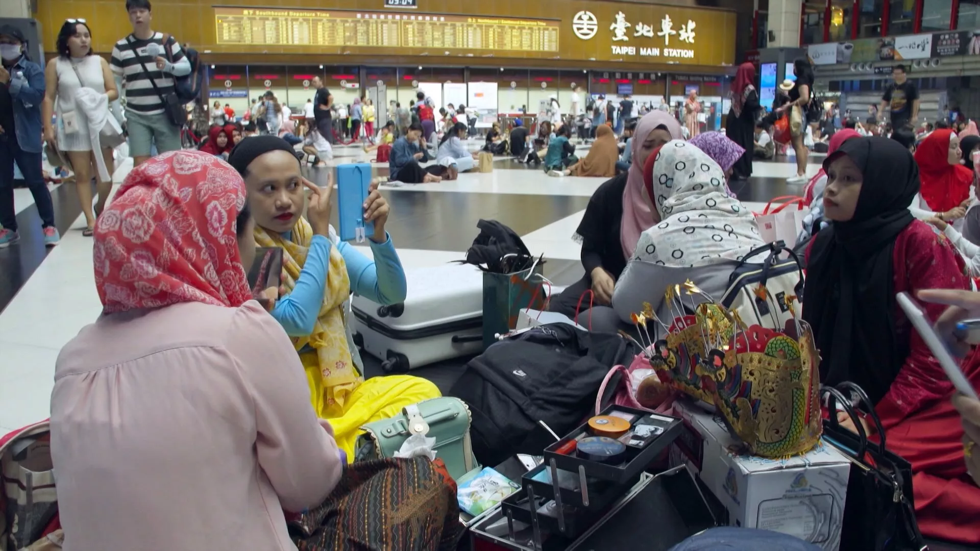 Para PMI bersila di atas lantai aula Stasiun Taipei. Sebagian bercengkerama, sebagian lagi menikmati makanan khas kampung halaman bersama teman-temannya. Berhubung lokasinya strategis dan kawasan komersial pertokoan Indonesia kebetulan ada di dekatnya, Stasiun Taipei pun menjadi tempat menangkring vital bagi para PMI saat liburan.