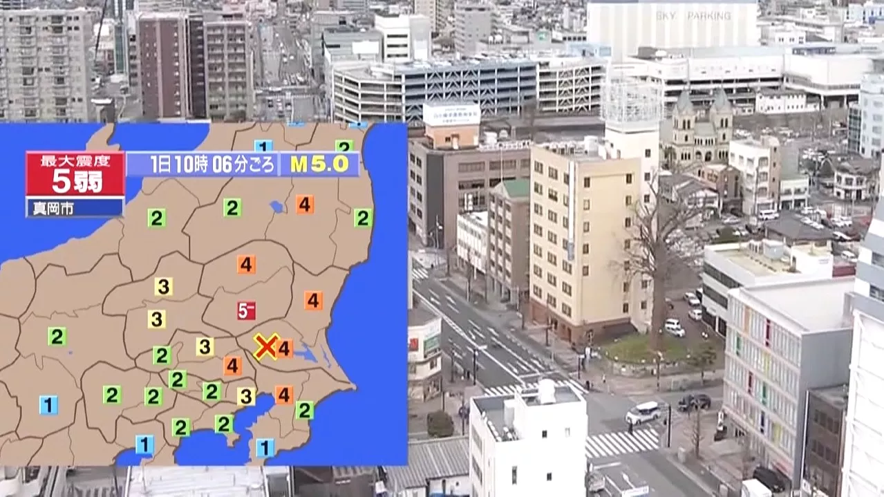 日本關東今(1)日又有地震,震央是在茨城縣南部,在當地時間大約上午10時,發生芮氏規模5.0的地震。