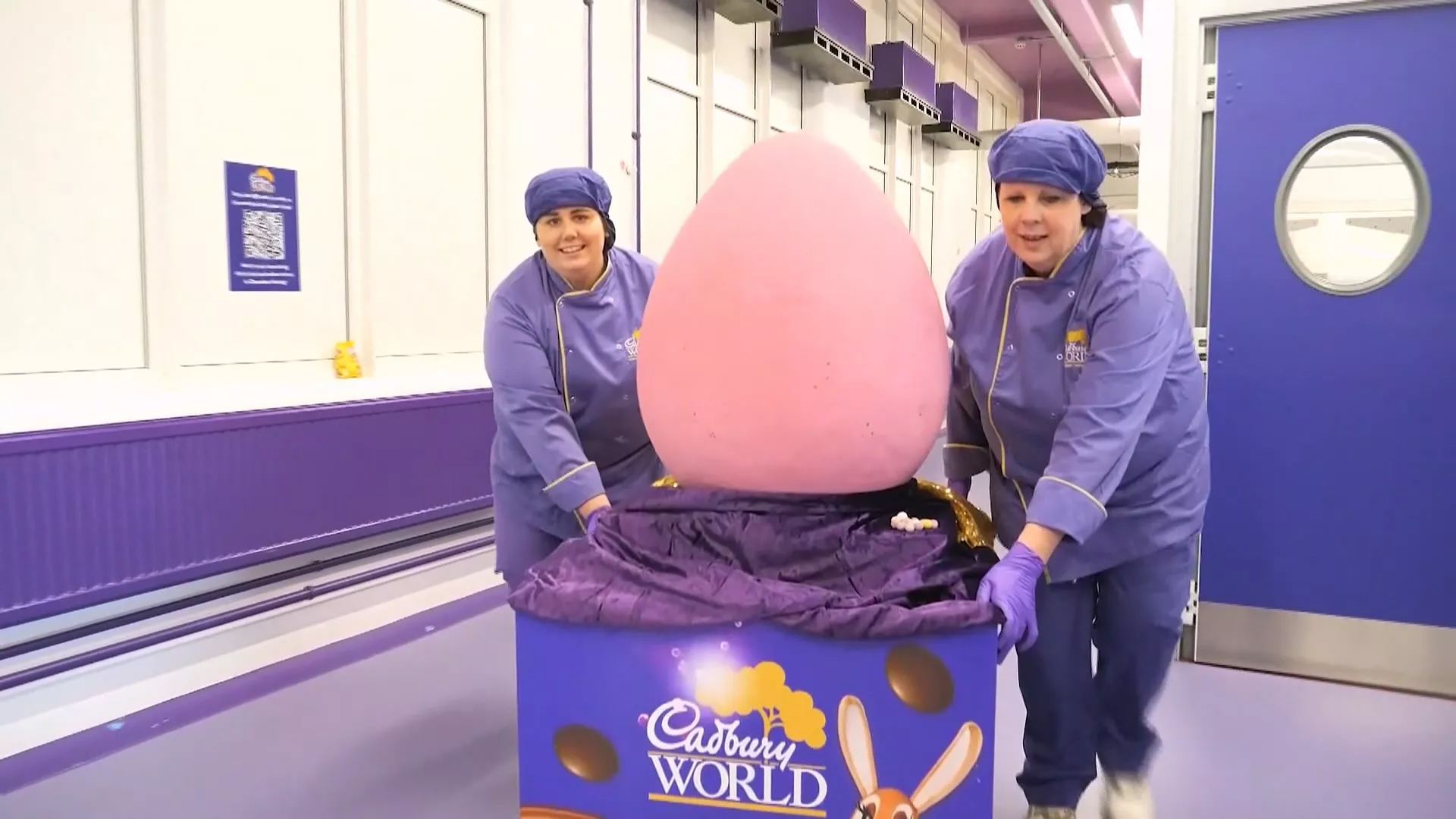 而在英國,巧克力品牌吉百利在復活節前夕,推出了重達55公斤的巧克力蛋,製作的構想來自一款在復活節才會推出的迷你巧克力蛋。