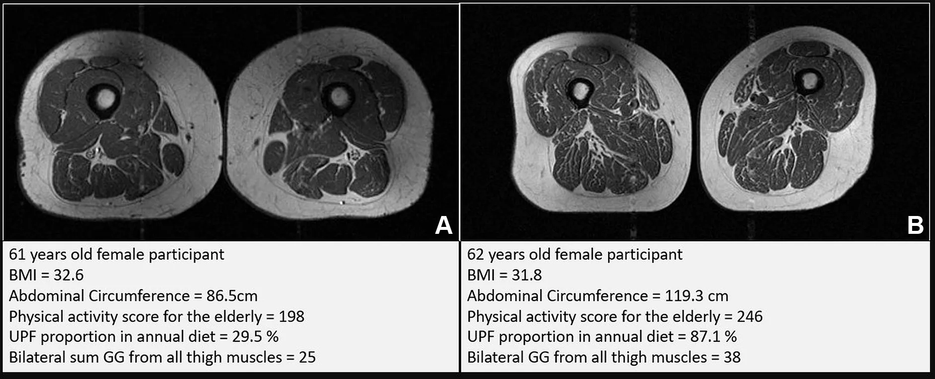 結果顯示,活動力分數較高、BMI值較低,但飲食較不健康的62歲女性,其大腿肌肉遭脂肪浸潤的情況反而更嚴重。研究指出,雖然無法證實肌肉遭脂肪浸潤與超加工食品存在因果關係,但仍可以確定兩者具有強烈關聯。