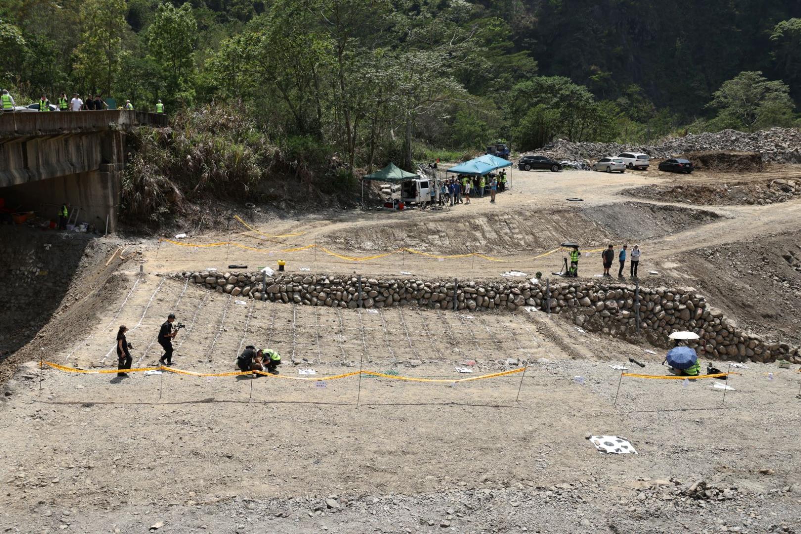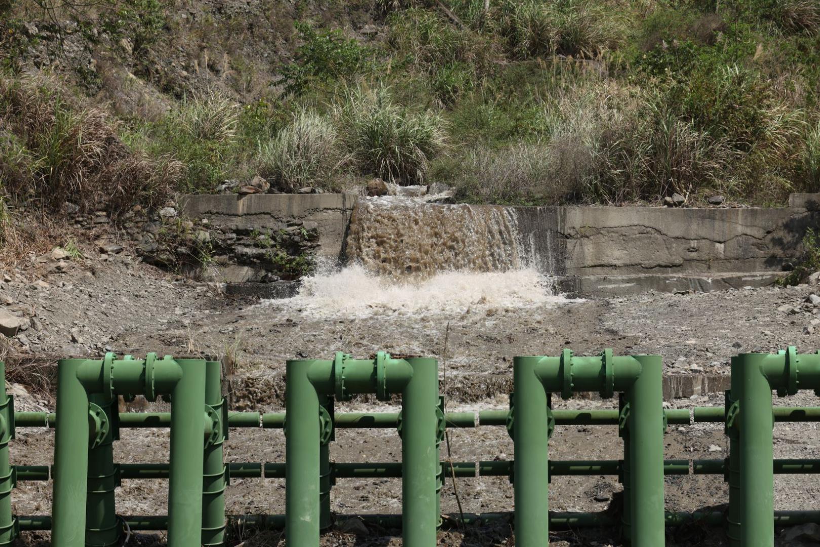 為了進一步了解大型堰塞湖的潰決機制,中興大學水保系陳樹群教授研究團隊,花了幾個月時間、動員超過60人,以1/50的比例,在惠蓀林場蘭島溪土砂試驗場重建一個「縮小版」馬太鞍溪堰塞湖。4月20日進行潰決試驗。