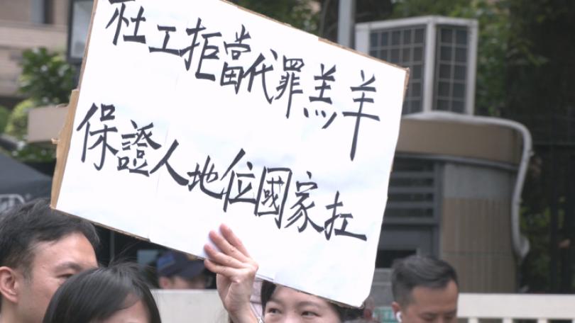 剴剴案陳姓社工日前遭法院依過失致死罪判刑,為國內首起社工因「保證人」地位遭判刑案例,引起社工界憤慨,22日前往行政院前抗議,呼籲政府道歉,並承擔制度崩壞的責任。