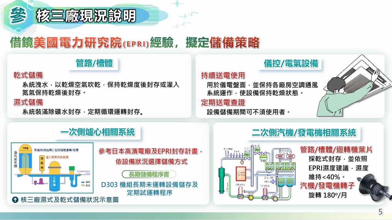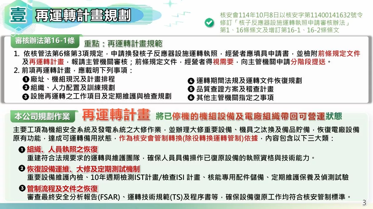 而有關部分與會人士提問,核三廠再運轉預估要花多少經費的問題,許永輝表示,依照國外經驗,設備更換會是支出占比最大的部分,等台電詳細確認完機組的狀況,會再對外說明。
