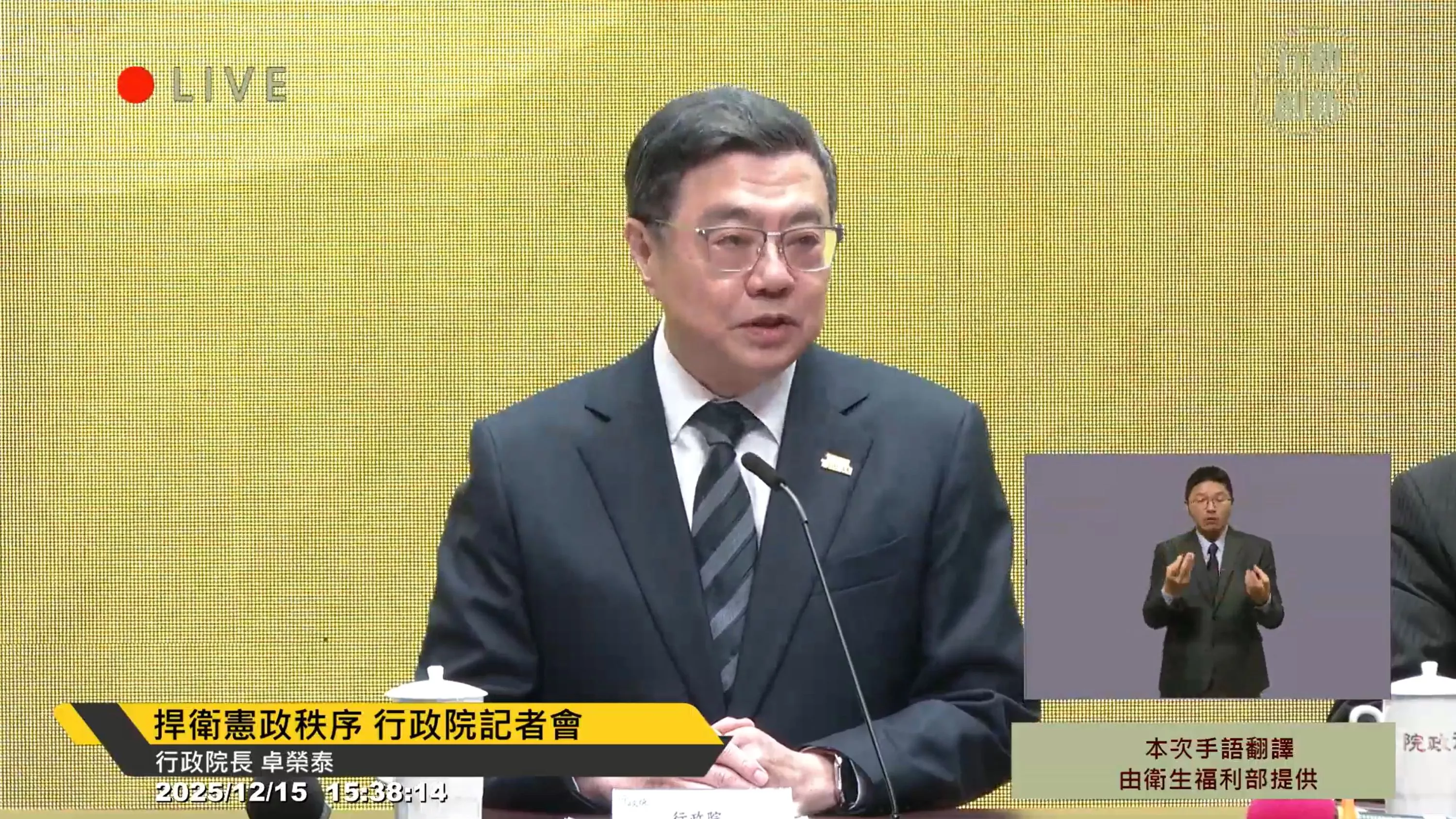 行政院長卓榮泰15日表示,針對《財劃法》修正案將不予副署。(圖/取自行政院直播) -