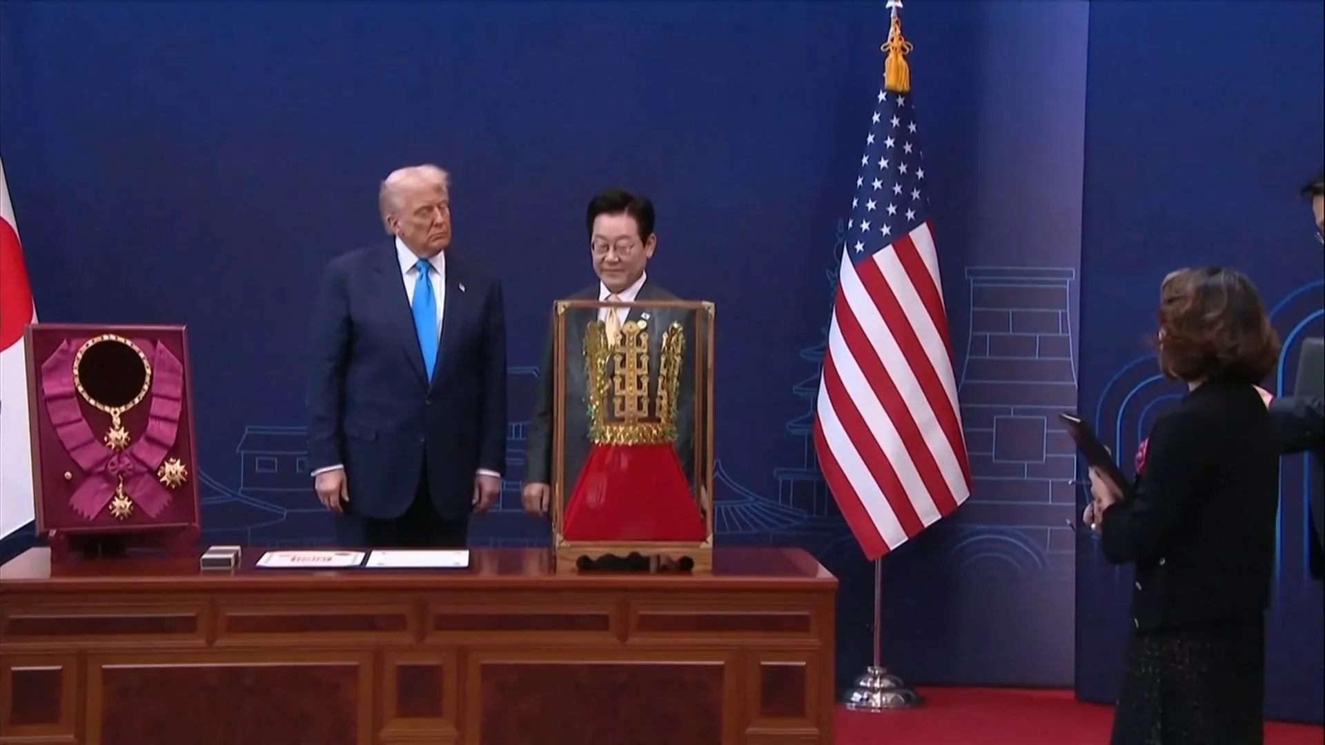 |全球美國總統川普(Donald Trump)今(29)日到南韓與南韓總統李在明舉行高峰會,李在明除了授予最高榮譽勳章,還送給川普一頂特製的新羅王朝金冠。川普日前才說希望能與北韓領導人金正恩見面,但北韓昨日又試射了飛彈。而川普此行的另一個重點,就是明(30)日的川習會,當被問到是否會跟習近平談到台灣,川普回答,「不確定,但也沒什麼好談的,台灣就是台灣」。